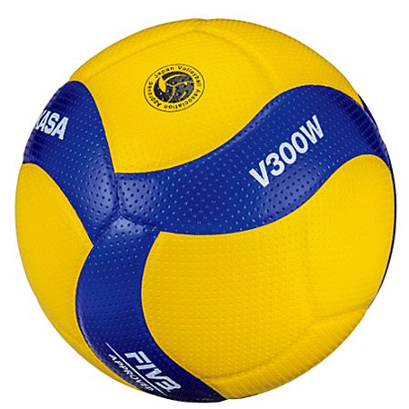 ミカサ(MIKASA) バレーボール5号球 一般・大学・高校用 品番:V300W カラー:イエロー×ブルー サイズ:5号球 素材:ディンプル、人工皮革 円周:65〜67cm 重量:260〜280g 推奨内圧:0.300kgf/cm2 国際公認球、検定球 機能・特徴 ・斬新なパネルデザインと配置 ・空力特性の向上により、飛行曲線の安定化 ・表皮のディンプルシボによる高いコントロール性 ・使い込むことで手に馴染み、より使用感が向上します
