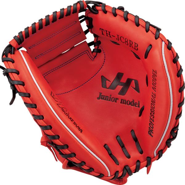 ハタケヤマ(HATAKEYAMA) 少年軟式用キャッチャーミット 品番:TH-JC8RB カラー:レッド 素材 表革:北米ステアハイド 裏革:共牛革 左右:右投げ ポジション:捕手用 ピンキーパターン採用 EX採用 台湾製