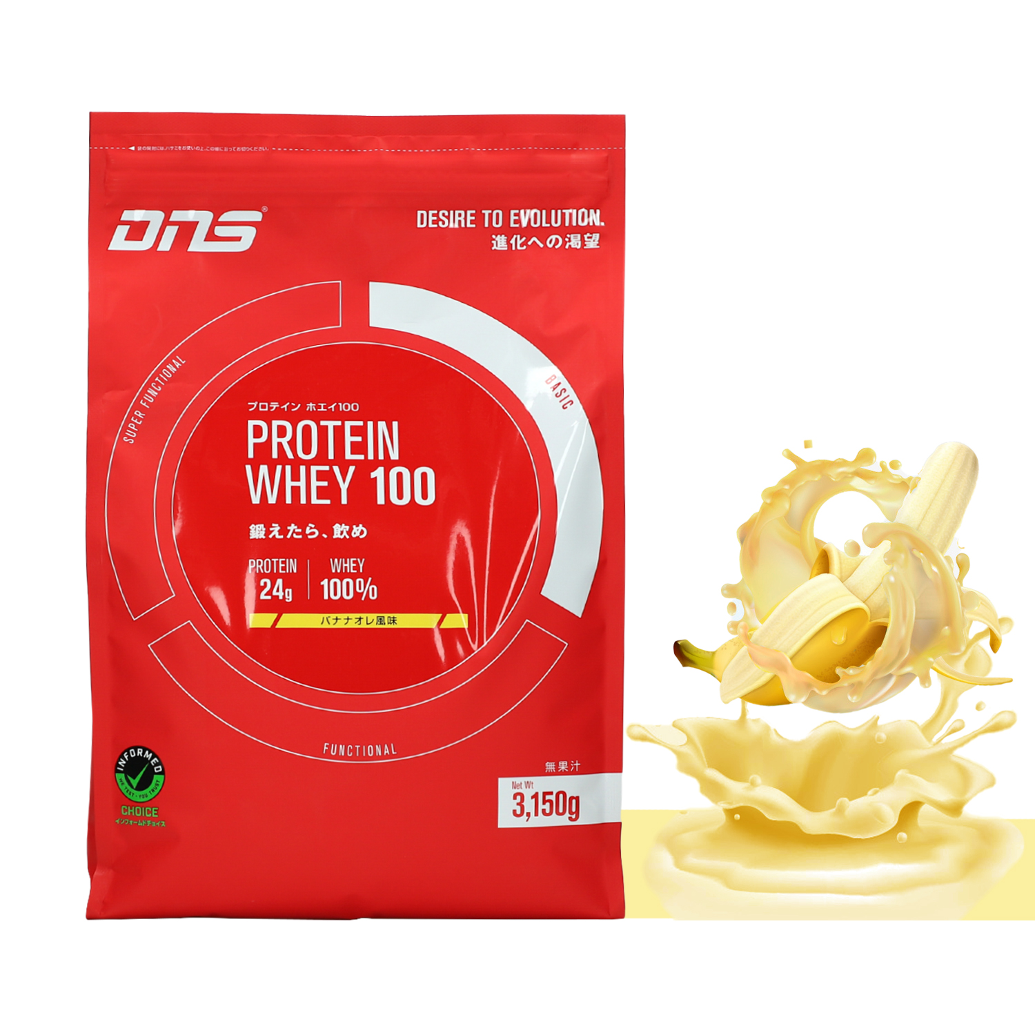 ディーエヌエス DNS プロテインホエイ100 バナナオレ風味 3150g 原材料名 ホエイたんぱく(乳成分を含む)、バナナパウダー、食塩/香料、乳化剤(大豆由来)、 着色料(クチナシ)、甘味料(スクラロース、アセスルファム K) ※遺伝子組み換え作物(GMO)を使用していません。 【1食(35g)あたり】エネルギー:139kcal、たんぱく質:24.5g(無水物換算値:25.5g)、脂質:2.2g、炭水化物:5.3g、ナトリウム:118mg(食塩相当量:0.3g) 内容量:3150g 機能・特徴 おいしさ向上、プロテインを感じさせない味 飲用タイミング:トレーニング後、食間など 保存方法 高温・多湿を避けて保存してください。