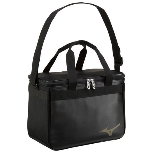 ミズノ(MIZUNO) クーラーバッグ M 品番:1FJY941809 カラー:09:ブラック サイズ:L31×W17×H24cm 素材:合成皮革(PU)、ナイロン(裏加工PU) 容量:約12L 重量:約440g 原産国:ベトナム製