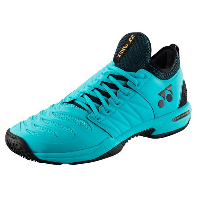 ヨネックス(YONEX) テニスシューズ パワークッションフュージョンレブ3MGC 品番:SHTF3MGC カラー:ミントブルー(526) サイズ:22.0〜29.0cm 素材:アッパー/合成繊維+合成樹脂、ミッドソール/合成樹脂、アウトソール/ゴム底 仕様:ローカット、3E設計 用途:クレー/砂入り人工芝コート 機能1:パワークッションプラス/ヨネックス独自開発の軽量衝撃吸収材「パワークッション」に弾性のある特殊な樹脂を添加。従来の軽量性は保ちつつ、高い衝撃吸収性(従来比25%アップ)を実現。格子状に「+型」の溝を最適な間隔と深さで配置し、さらなる反発性(従来比12%アップ)を達成しました。 機能2:新設計フレクションアッパー/シューレースを、締め込みの圧力が集中しやすい舟状骨〜楔状骨付近を避けてレイアウトすることで、圧力を足全体に分散させ、包み込まれるようなフィット感を実現しました。 機能3:インナーブーティ構造/中足部からかかと部にかけて、伸縮素材で足を包み込み柔らかなフィット感を実現。 原産国:ベトナム