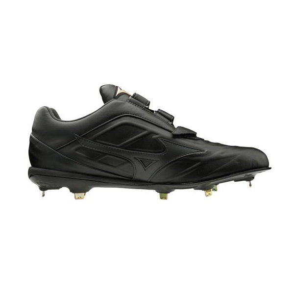 品番:11GM1914 カラー:00(ブラック×ブラック) サイズ:25.0~29.0、30.0cm(2E) 甲材:人工皮革 底材:合成底 スパイク:金属(超硬チップ金具固定式) 質量:約295g(27.0cm片方) 詳細:GCLインソール(取り外し可) 原産国:カンボジア製