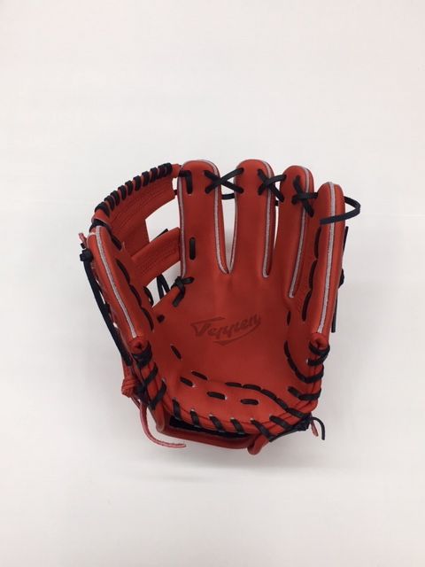 Teppen(テッペン) 硬式野球グラブ 内野手用 RM6型 品番:RM6-DO-RED-BLK カラー:ディープオレンジ 素材:北米ステアレザー モデル:RM6型 当て革:有り バックスタイル:ストレートバック グラブサイズ:5mm小 ウェブ型:Hウェブ ハミダシ:キリハミホワイト(自然色) ステッチカラー:レッド 革紐カラー:ブラック 手口スタイル:逆巻き ムートンカラー:ブラック ラベル型:Tマークタイプ ポジション:サード・ショート向け 生産国:日本製