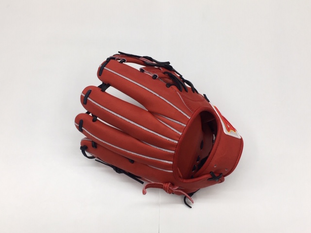RM6型は当て捕りプレーヤー向けに開発しましたが、掴み取ることも可能になっています。 まず大きく広く平たい捕球面を確保し、土手はあまり広すぎないようになっています。 背面は窓を大きく開け、軽量化と屈曲性を高め非常に自由度の高いプレースタイル実現。