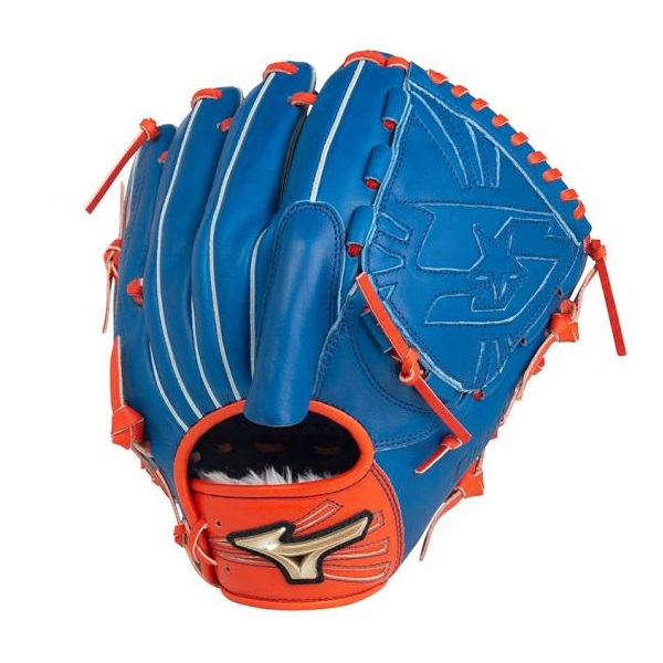 品番:1AJGS21401 カラー:2252(ロイヤルブルー×スプレンディッドオレンジ) 素材:受球面・背面:クレストハイド(天然皮革:牛革) ポジション:投手用 サイズ:11 左右:右投用 付属品:専用グラブ袋付 原産国:フィリピン製