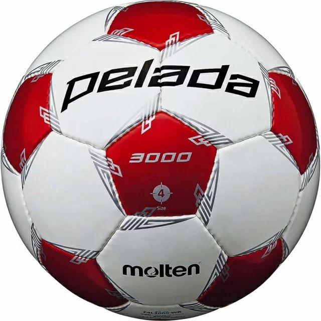 モルテン(molten) サッカーボール4号球 ペレーダ3000 品番:F4L3000WR カラー:ホワイト×メタリックレッド サイズ:4号球 素材:人工皮革、縫い 用途(コートサーフェス):土 特徴 縫い・人工皮革 砂防止バルブ 検定球 生産国:ラオス製・中国製