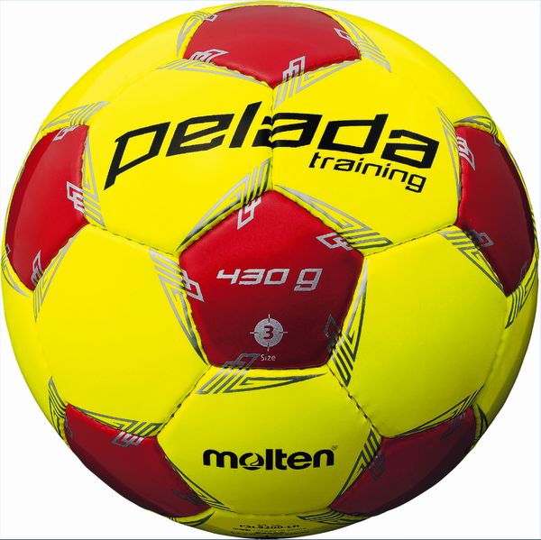 モルテン(molten) サッカーボール3号球 ペレーダトレーニング 品番:F3L9200-LR カラー:ライトイエロー×メタリックレッド 重量:約430g(5号球と同等) 素材:人工皮革、縫い 特徴 縫い・人工皮革 砂防止バルブ 生産国:中国製