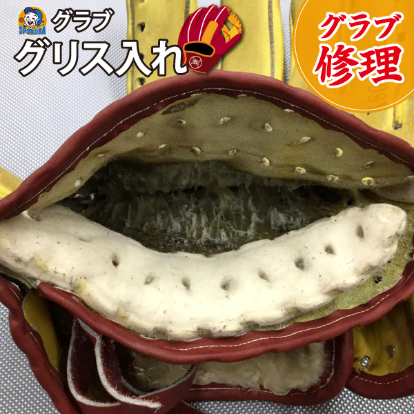 ■品名:【グラブ修理】 グリス入れ 〜グラブ〜 ■商品説明:グリスを入れて浮いてしまった受球面と平裏面の革を貼り合わせます。 ボールを受けた時に、受球面の音が良く鳴るようになります。