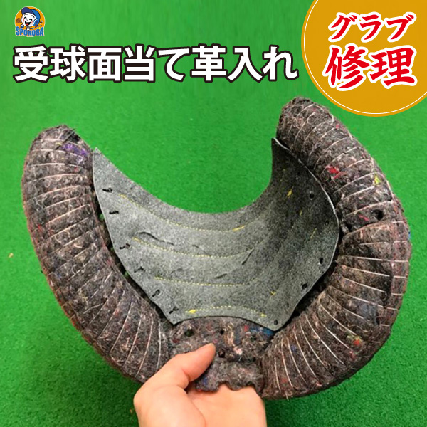 ■品名:【グラブ修理】 受球面当て革入れ ■商品説明:凹凸のある受球面を平らにします。 革が薄くなって捕球の際、手が痛む方にもおすすめです!