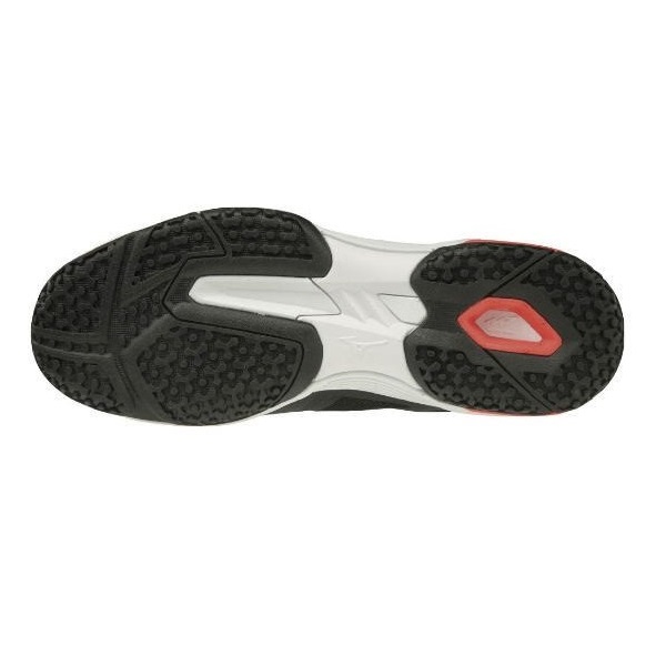 品番:61GB2017 カラー:09(ブラック×ホワイト×コーラル) サイズ:23.0~28.5cm ウィズ:3E相当の方向け 素材 甲材:人工皮革・合成繊維 底材:合成底 質量:285g(27.0cm片方) インソール:カップインソール(取り外し可) 対象/目的:砂入り人工芝・クレーコート用 原産国:ベトナム製