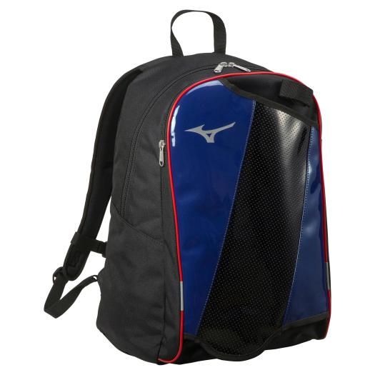 ミズノ(MIZUNO) ジュニア バックパック 品番:1FJD0025 カラー:16:パステルネイビー サイズ:L30×W18×H43cm 素材:ポリエステル(裏加工PU)・合成皮革(PUエナメル) 重量:約470g 容量:約23L 原産国:ベトナム製