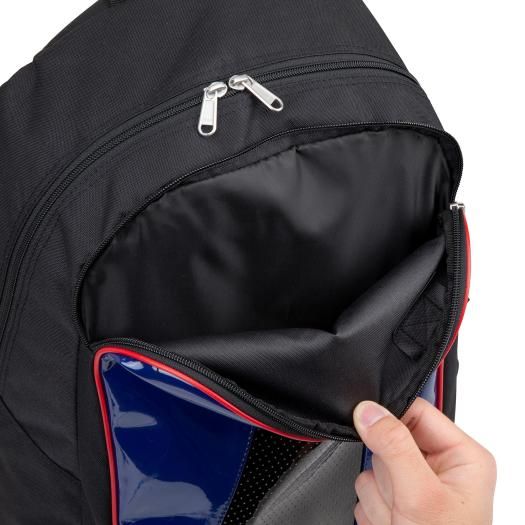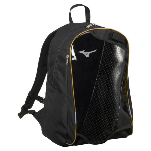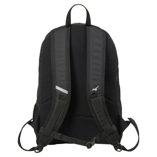 ミズノ(MIZUNO) ジュニア バックパック 品番:1FJD0025 カラー:09:ブラック サイズ:L30×W18×H43cm 素材:ポリエステル(裏加工PU)・合成皮革(PUエナメル) 重量:約470g 容量:約23L 原産国:ベトナム製