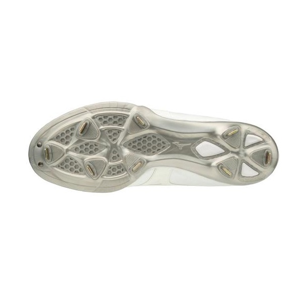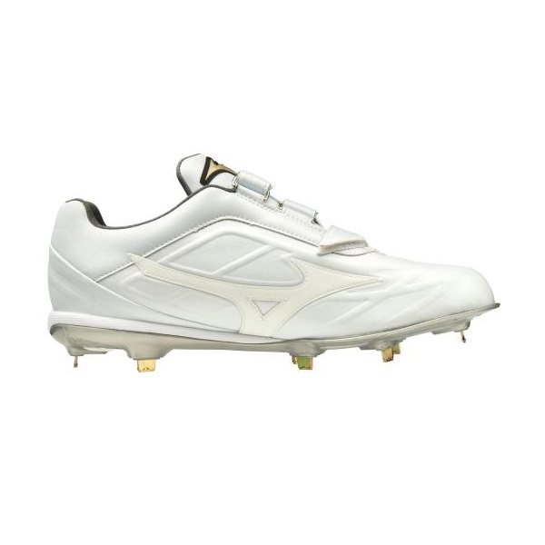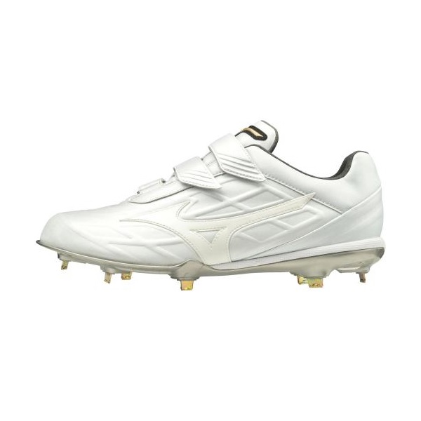 品番:11GM1914 カラー:01(ホワイト×ホワイト) サイズ:25.0~29.0、30.0cm(2E) 甲材:人工皮革 底材:合成底 スパイク:金属(超硬チップ金具固定式) 質量:約295g(27.0cm片方) インソール:GCLインソール(取り外し可) 原産国:カンボジア製