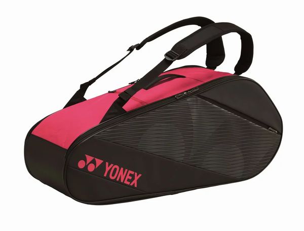 ヨネックス(YONEX) ラケットバッグ6 テニス6本用 品番:BAG2012R カラー:ブラック/ローズピンク(747) 素材:ポリエステル+PU サブ機能:正面ポケット、天マチポケット サイズ:幅77×奥行き28×高さ32(cm) 原産国:ベトナム製