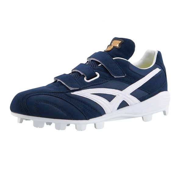 品番:ESF4007 カラー:ネイビー×ホワイト(7010) サイズ:24.5〜29.0cm、30.0cm 甲材:人工皮革、合成繊維 アウトソール:合成樹脂 ミッドソール:合成樹脂 スパイク:金属製 付属品:シューズ袋 生産国:ベトナム