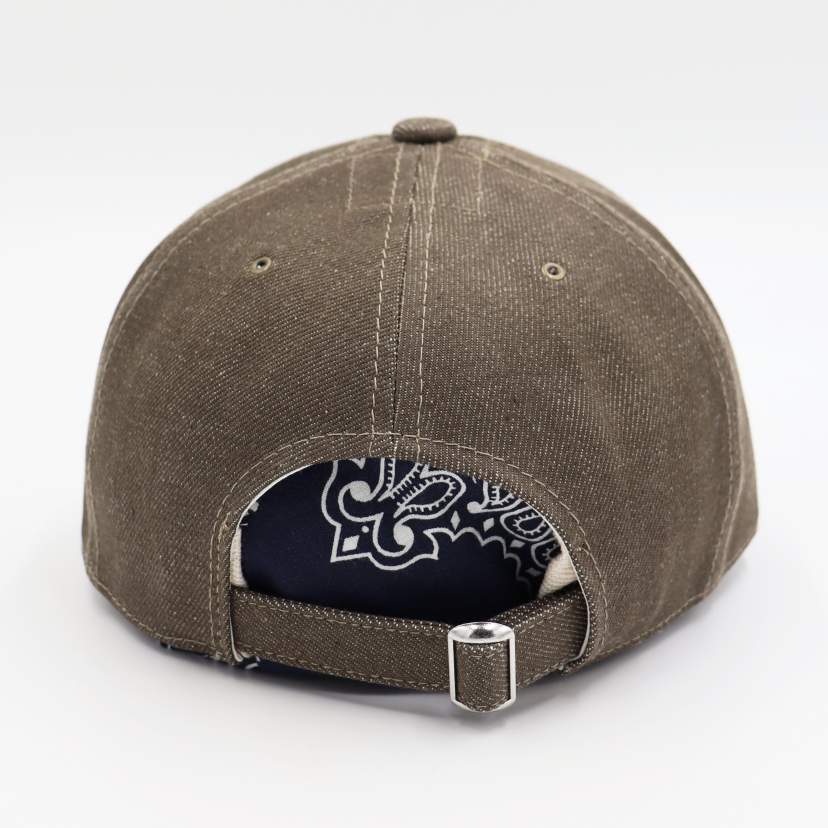 つばをカーブさせてかぶるのがお勧めです。色を検討して作ったオリジナルカラーデニム生地です。
